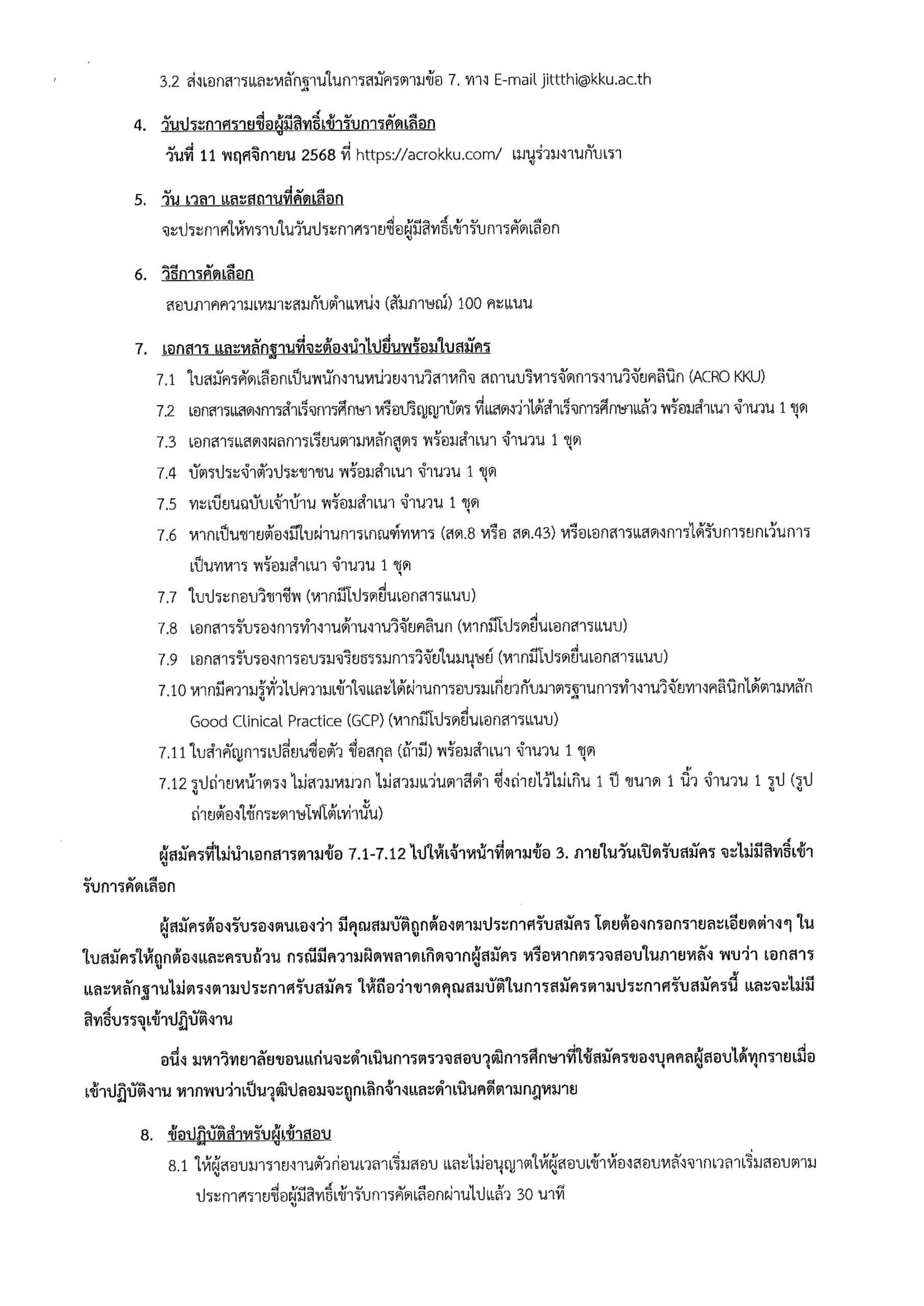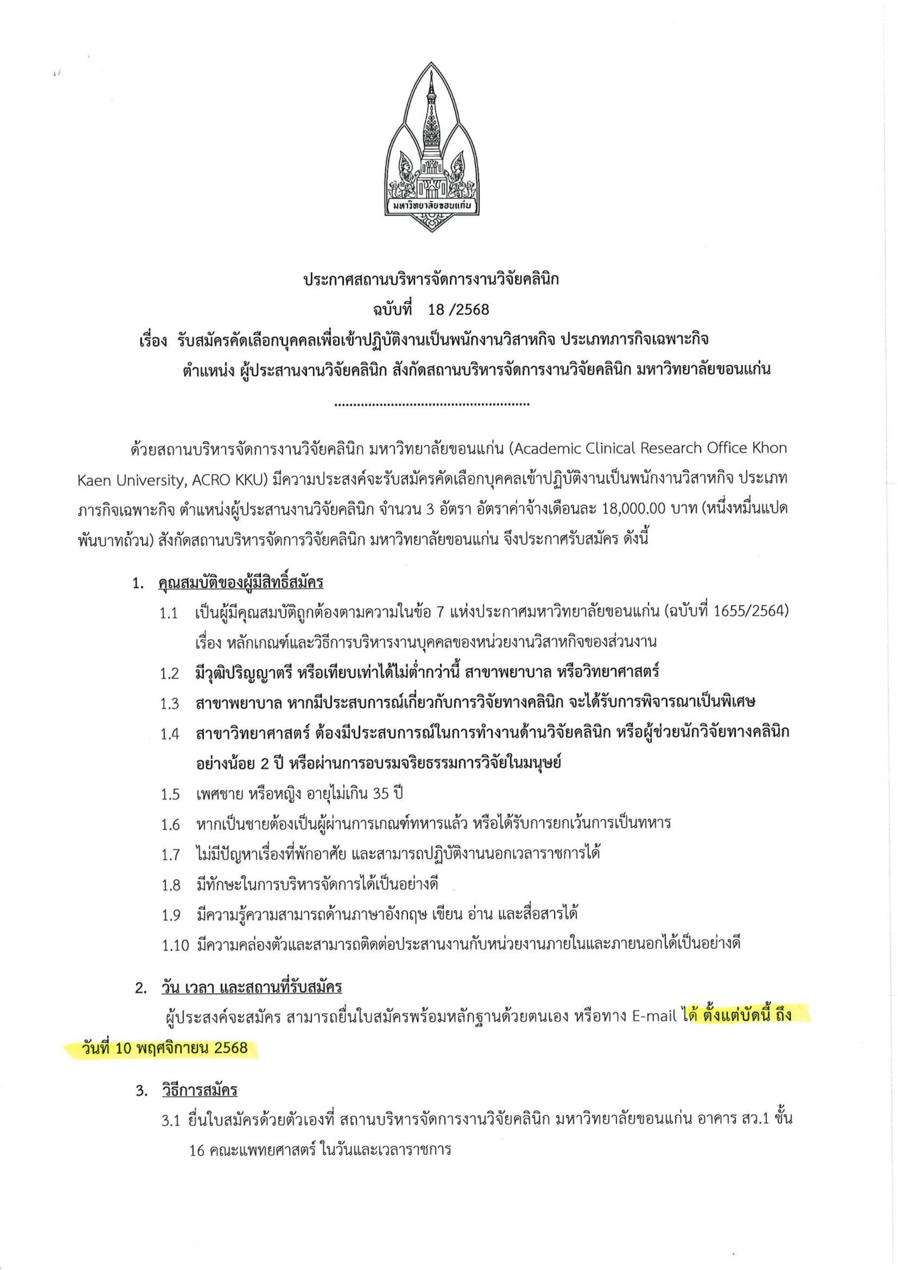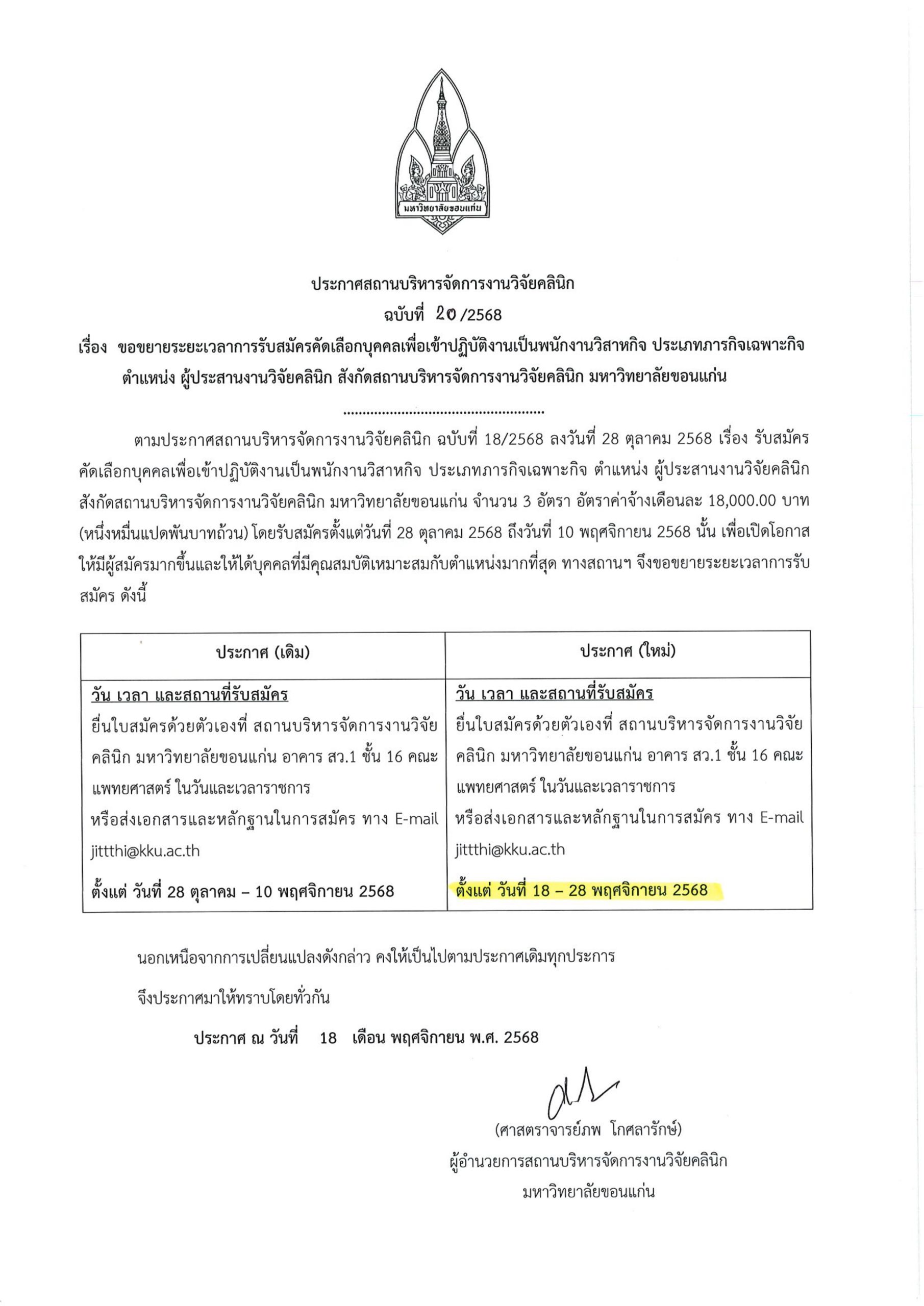 ประกาศ ACRO 20-2568 ขยายระยะเวลารับสมัครคัดเลือกบ